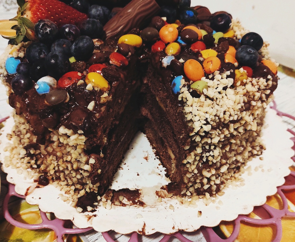 Eu l-am decorat cu bomboane colorate, fructe, seminte de migdale macinate, ramane la alegerea dumneavoastra cum sa-l decorati.