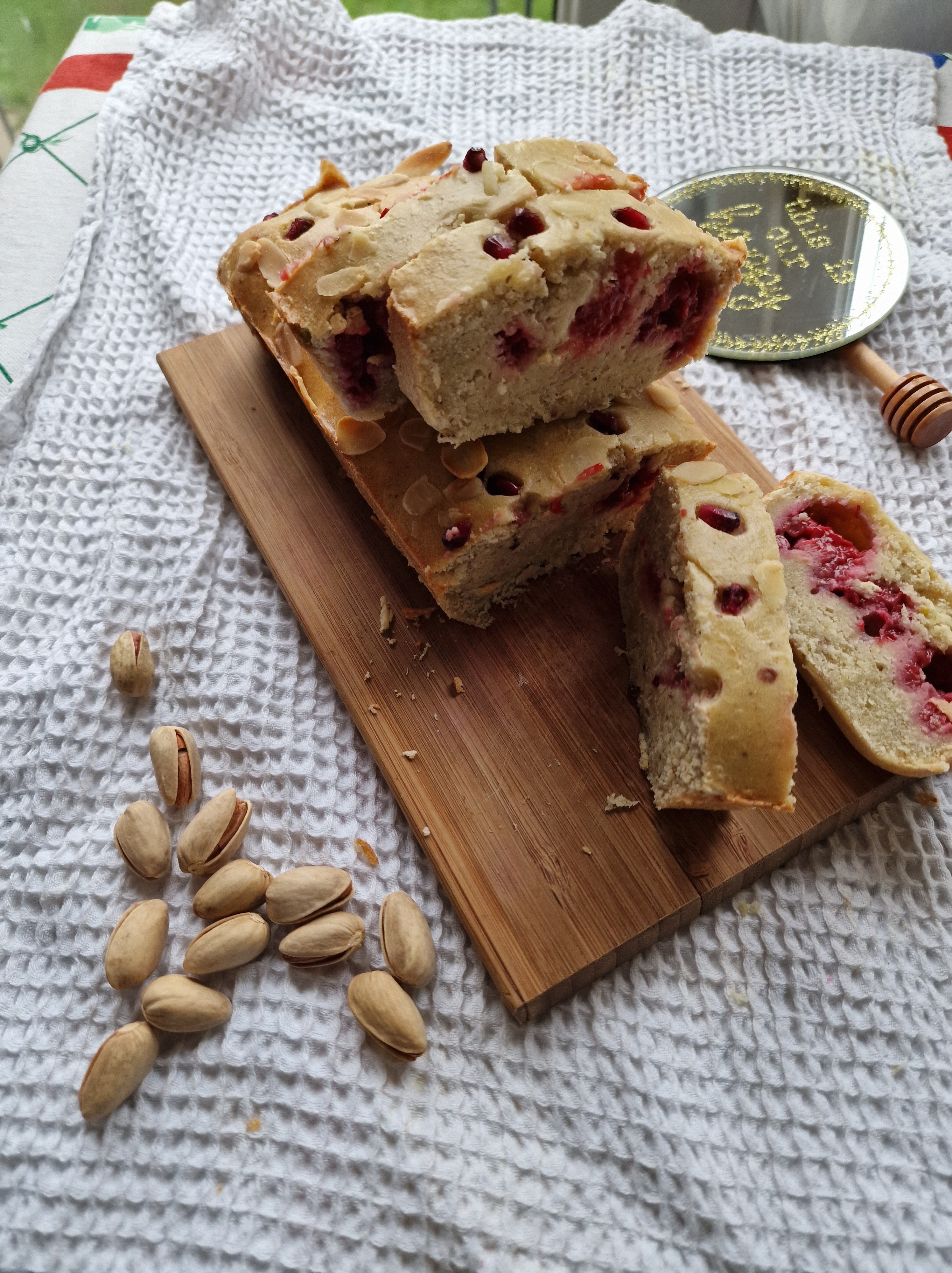 Am turnat restul de compozitie si am ornat cu fulgi de migdale si cateva bobite de rodie.
