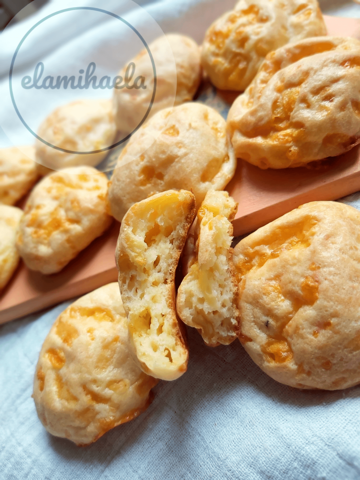 Am spart oul intr-un bol, iar peste el am ras cascavalul, am pus branza (eu am facut de casa, dar merge si proaspata de vaci), praful de copt si piperul. Am incorporat bine toate acestea dupa care am inceput sa adaug faina. Am tot pus si amestecat pana aluatul a devenit putin lipicios, dar omogen.