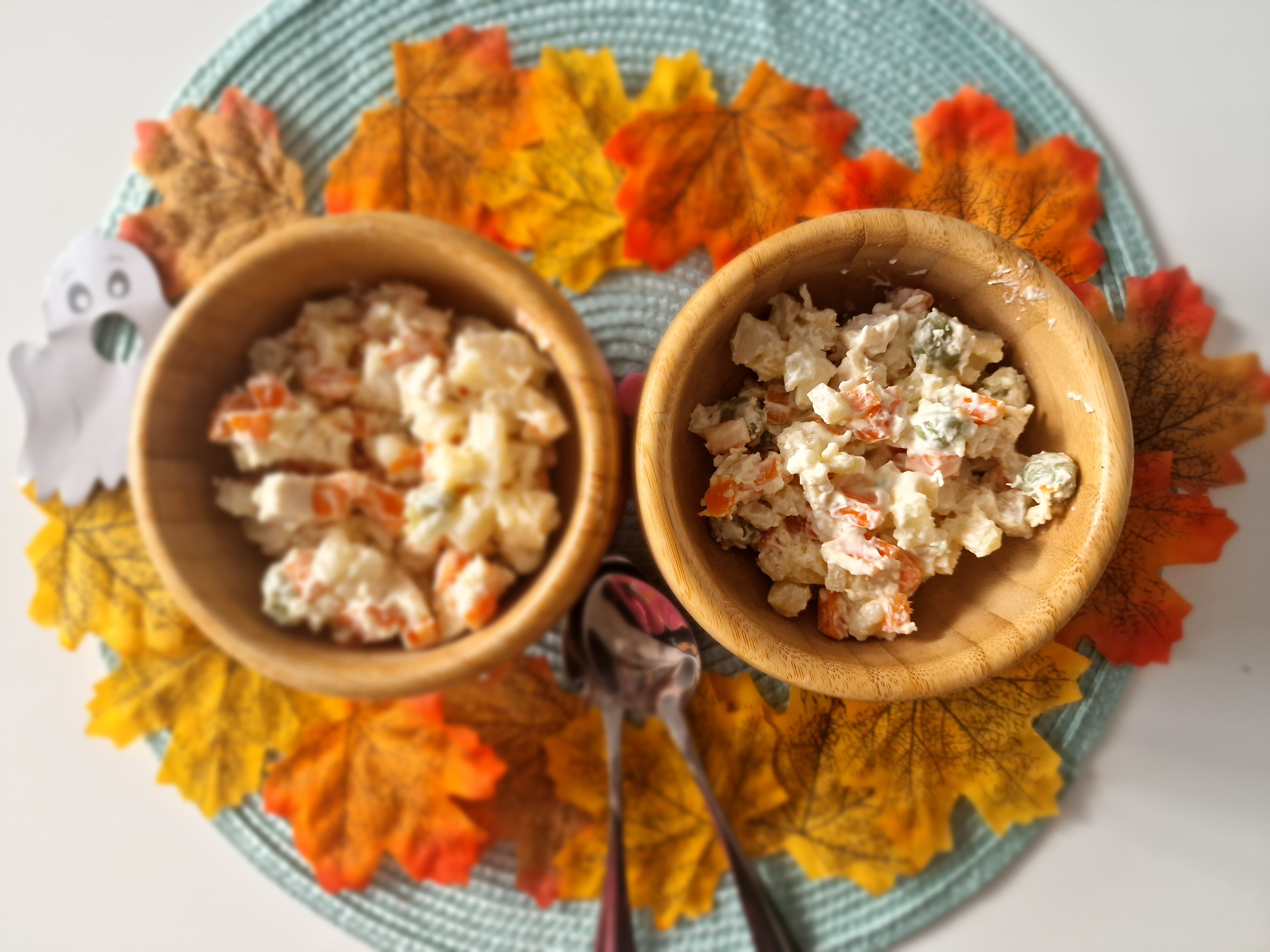 Punem totul intr-un bol si amestecam cu maioneza. Daca considerati ca mai trebuie maioneza, puteti mari cantitatile ingredientelor.