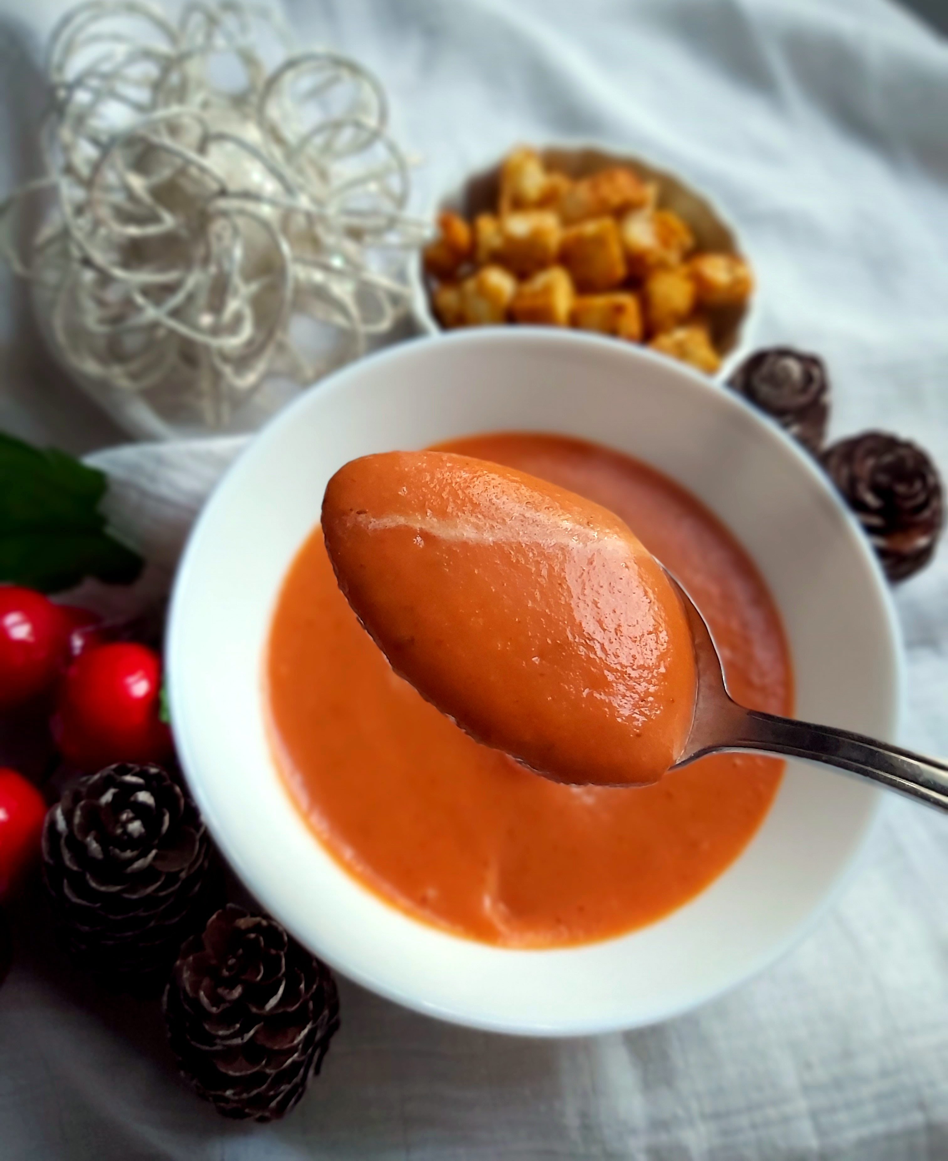 Intre timp am copt si crutoanele. Am taiat feliile de bagheta cubulete mici dupa care intr-un castron le-am amestecat impreuna cu toate condimentele si uleiul de masline dupa care le-am pus in tava cuptorului tapetata cu hartie si le-am copt 10 minute la 180°.