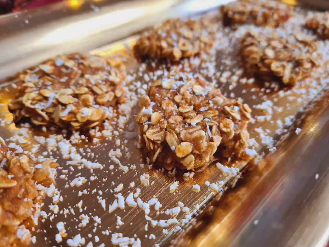Intr-o tava tapetata cu hartie de copt, punem gramajoare din loc in loc, folosind o lingura.