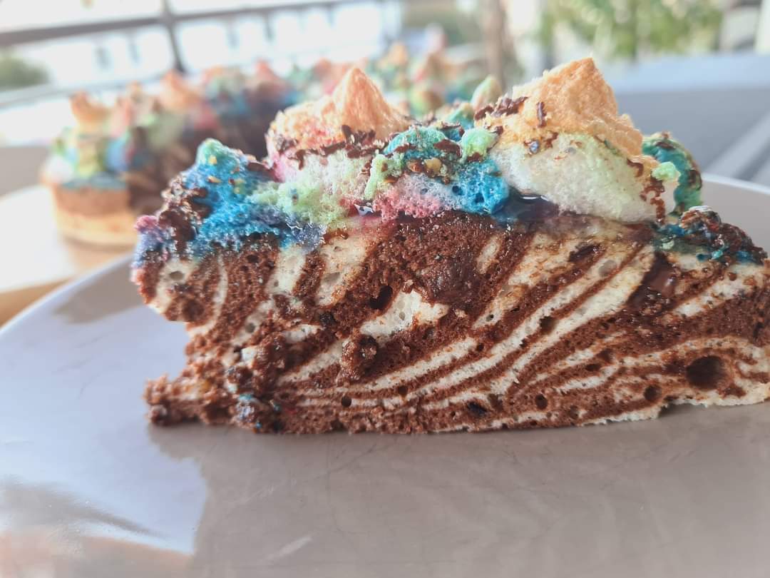 Am pus compozitia de albus batut cu zahar intr-un pos si am facut bilute peste toata prajitura, cu toate culorile. Puteti pastra culoarea alba sau puteti doar intinde peste prajitura noua bezea.