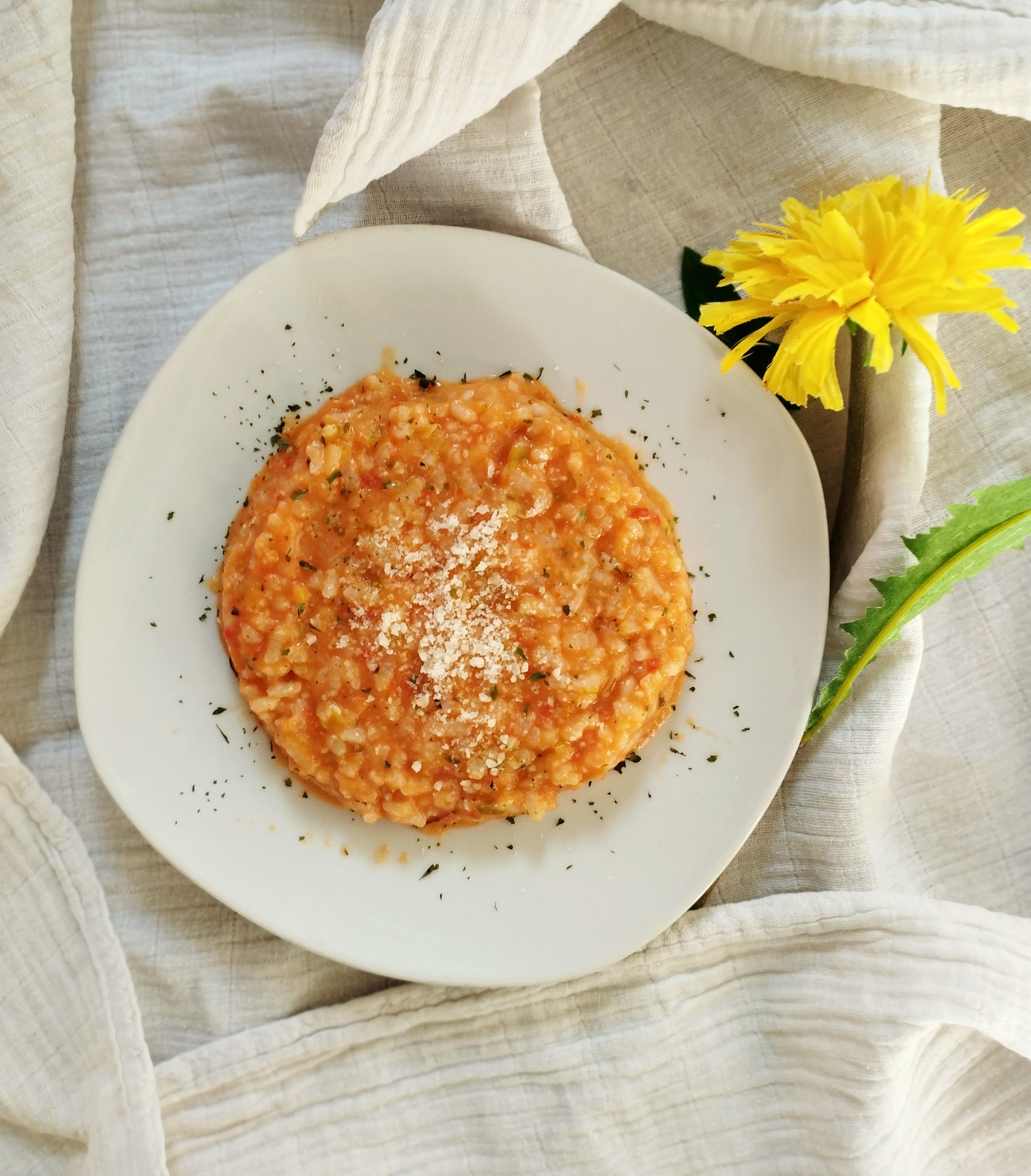 Am mai lasat risotto-ul 10 minute sa fiarba sa absoarba orezul si pasta de tomate si sa devina cremos dupa care am oprit focul.