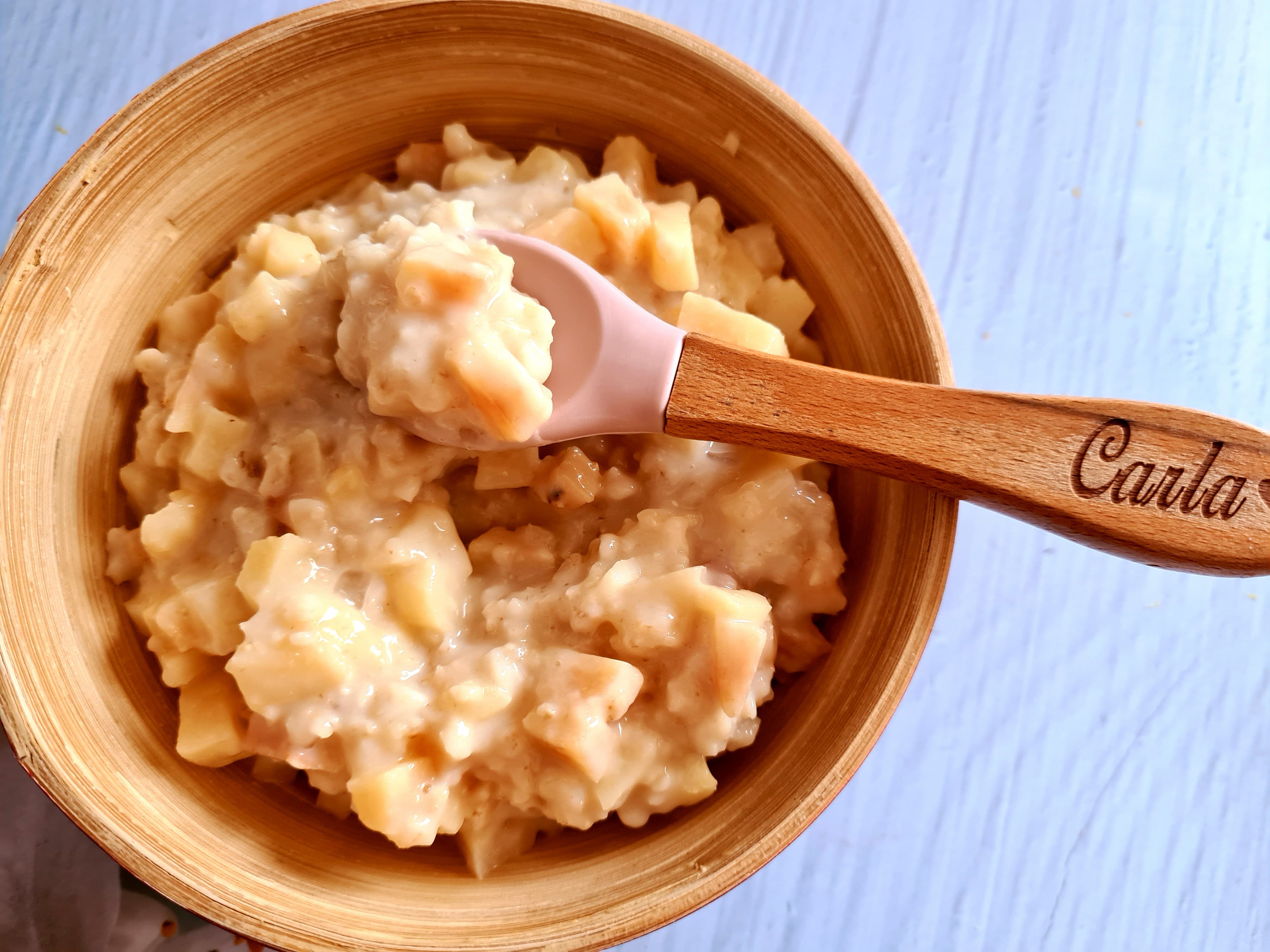 Il taiem cubulete mici apoi il adaugam peste fulgi, in lapte.