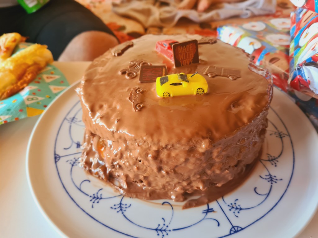 Normal, ar trebui sa stea din nou la rece, macar 2-3 ore sau ideal peste noapte, pana se uniformizeaza frumos glazura. Din nou, la mine a stat undeva la 30 de minute, maxim. Garantez ca daca respectati timpul pentru frigider, va iesi o capodobera, mult peste tortul meu.