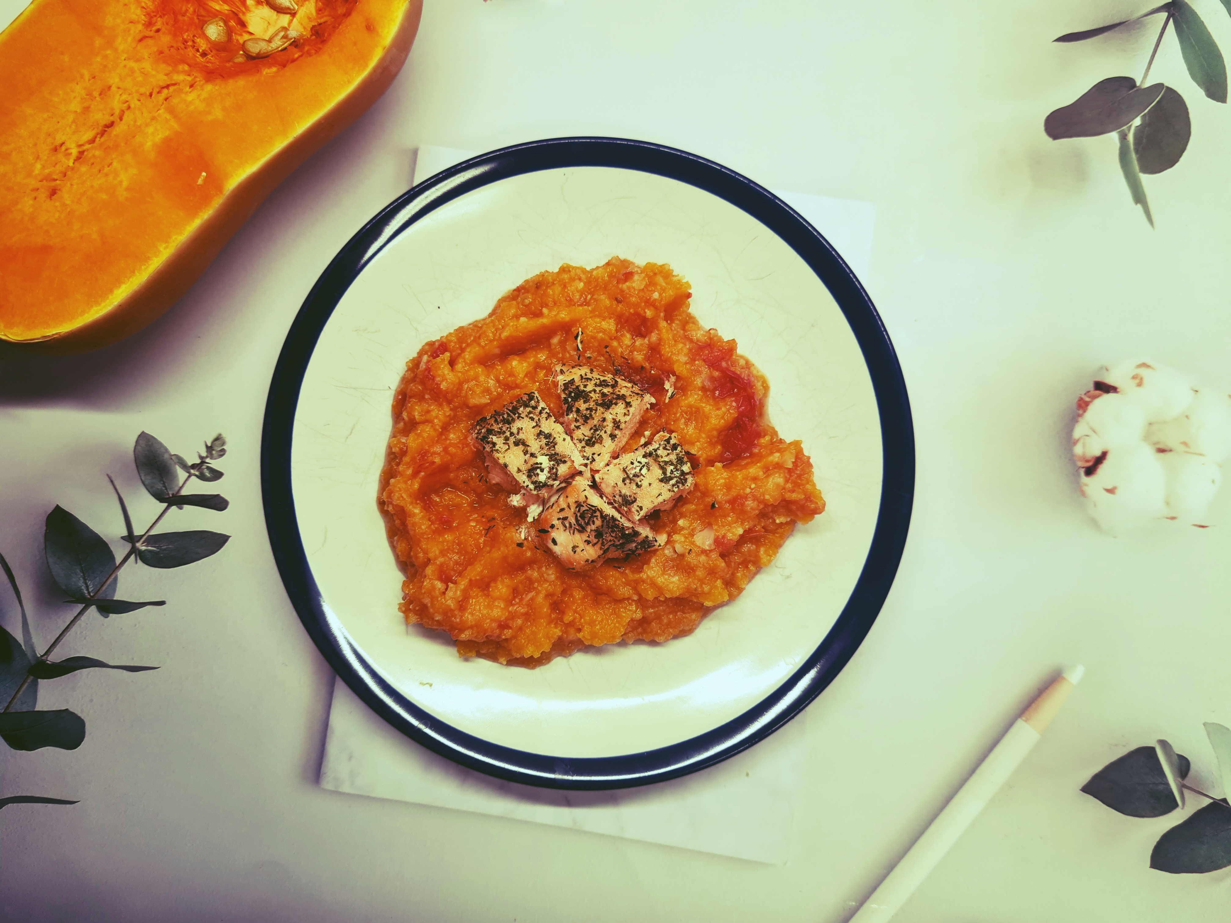 Dupa ce au fiert legumele, incercam sa extragem dovleacul si conopida si sa pastram rosiile in vasul blenderului, pentru a le mixa. Dovleacul si conopida, o parte din ele, le zdrobim cu furculita. Am folosit aceasta tehnica pentru putina textura, puteti blendui pur si simplu totul.