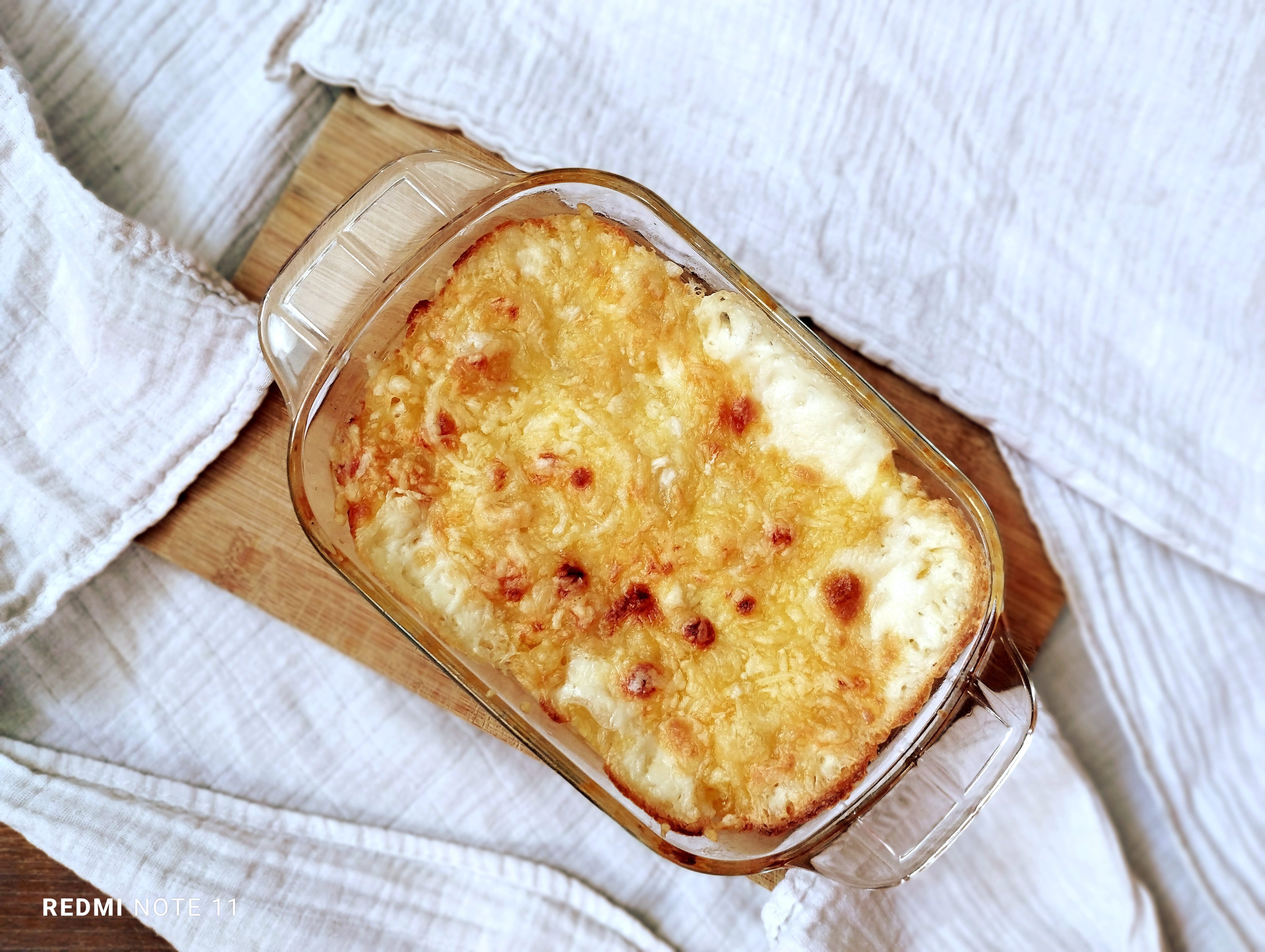 Am bagat forma la cuptor pentru 20 de minute la 150°, pana stratul de cascaval, de deasupra, s-a gratinat si rumenit frumos.