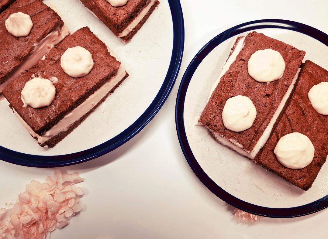 Punem compozitia intr-o tava tapetata cu hartie de copt, cu dimensiunea de 23×28, si la cuptor pentru aproximativ 25-30 de minute sau pana trece testul scobitorii. Scoatem tava, punem blatul pe un gril si indepartam foaia de copt, apoi lasam sa se raceasca.