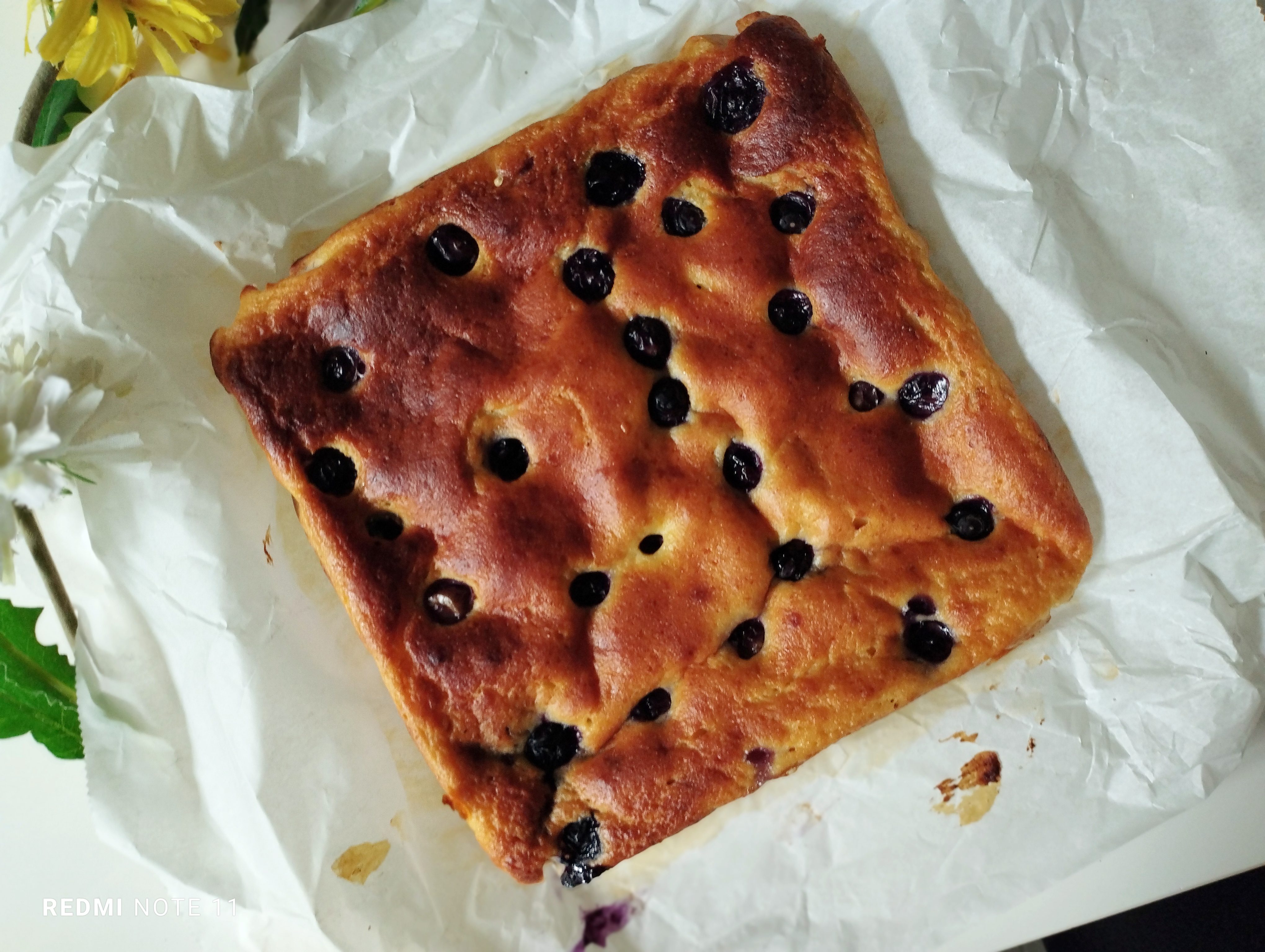 Le-am inglobat pe toate cu spatula dupa care am pus 1/2 din cantitatea de afine (am folosit proaspete). Le-am inglobat usor pentru a nu le strivi dupa care am turnat compozitia in tava tapetata cu hartie.